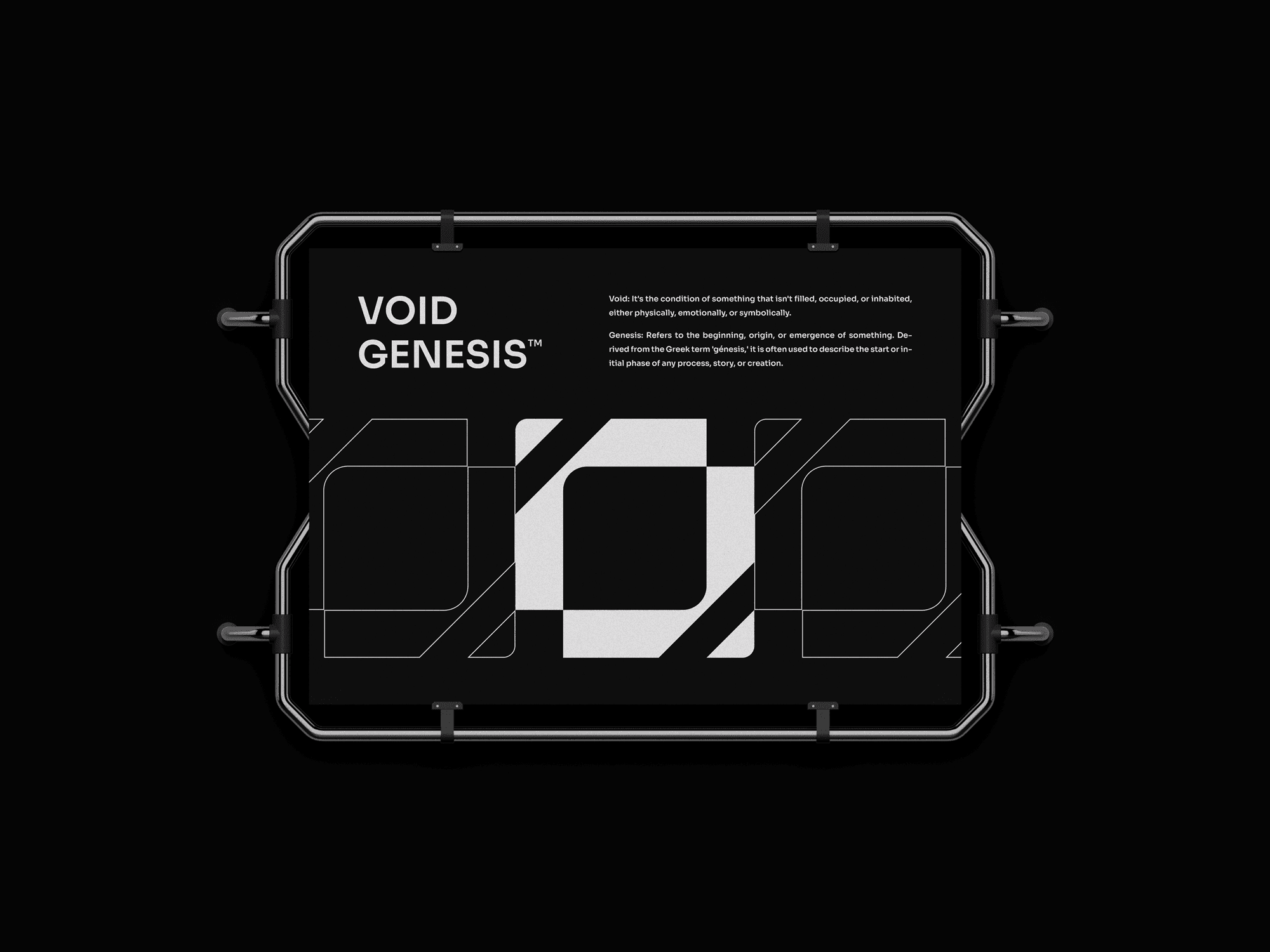 The direction focused on translating abstract ideas such as “void” and “genesis” into a clear and recognizable identity, using minimal resources to achieve maximum impact.